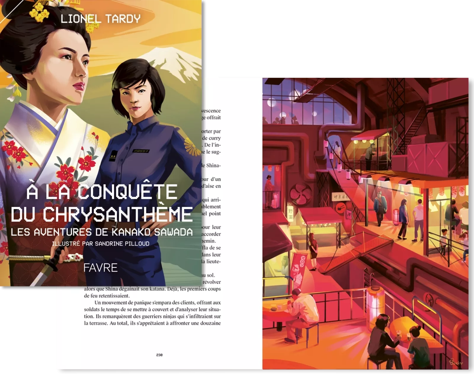 «À la conquête du chrysanthème» est le second roman des «Aventures de Kanako Sawada». Il se déroule cinq ans après le premier tome et raconte la suite de la carrière militaire de Kanako, emportant lecteurs et lectrices de Shinkyō, capitale du Nouvel Empire du Japon jusqu’aux terres les plus reculées de l’archipel nippon.